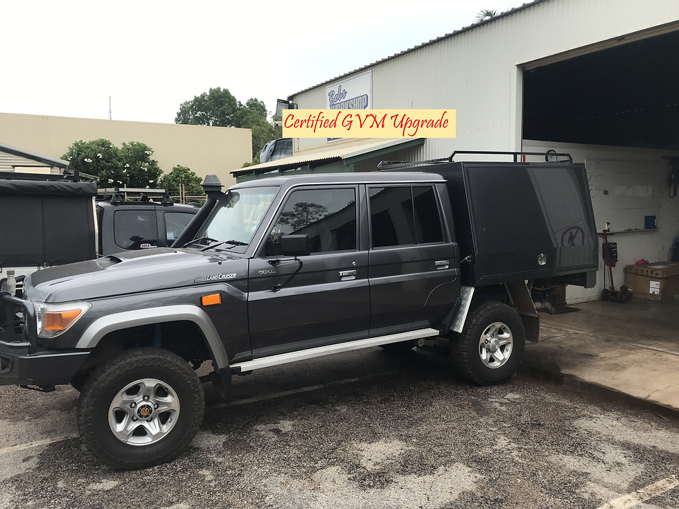 Many utes today are close to their GMV straight off the assembly line and leave little leeway for trays, bull bars or tool box's let alone the gear you would like to carry. A GVM upgrade can increase the weight your vehicle can carry legally. A modification plate is fitted to your vehicle and the information if recorded with DOT after a Road Worthy Inspection.